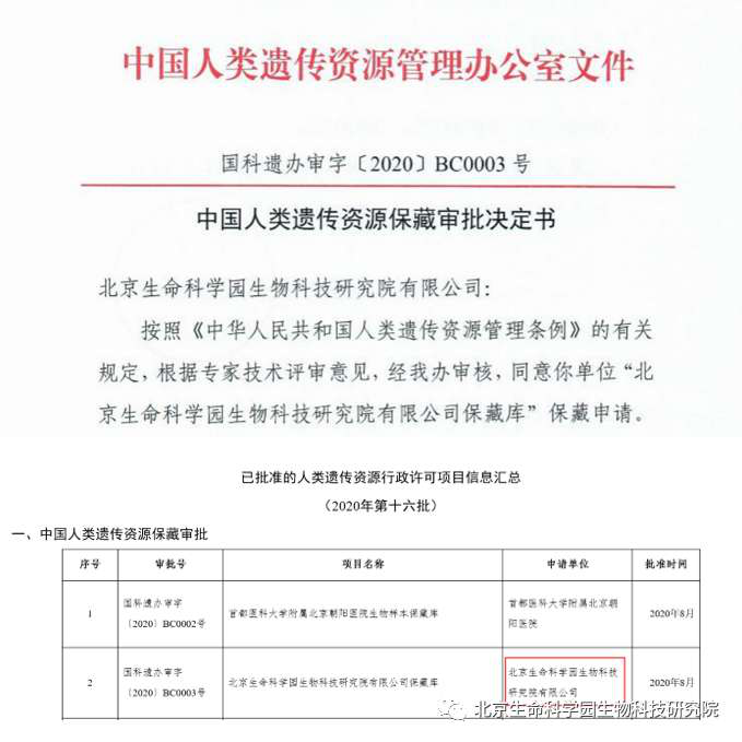 北京生命科學園生物科技研究院(以下簡稱“北京生物樣本資源庫”)(Biobank of Life Science Park,簡寫“BoLSP”)是一家由北京市科委和中關村生命科學園共同支持設立的第三方生物樣本庫公共服務平臺,秉承北京重大疾病臨床數據和樣本資源庫(以下簡稱“北京庫”)(Beijing Biobank of Clinical Resources,BBCR)十余年的發(fā)展成果,聚合眾多臨床樣本專家的專業共識,致力于在生命科學、生物醫(yī)藥研究領域發(fā)揮銜接樣本資源持有者與研究者的橋梁作用,解決生物樣本資源開發(fā)上下游信息不對稱、資源共享困難等問題。研究院在北京中關村生命科學園昌平園區建立了2000㎡生物樣本庫,最大存儲規(guī)模達1000萬份。研究院遵循CNAS-CL10:2020《生物樣本庫質量和能力認可準則》,同時結合北京庫過去十年的工作經驗與教訓,建立了一套完善的生物樣本保藏質量管理體系,從人、機、料、法、環(huán)、控多個角度,實現生物樣本保藏過程的全面質量控制,先后獲得國家科技部頒發(fā)的人類遺傳資源保藏行政許可證書和中國合格評定國家認可委員會(China National Accreditation Service for Conformity Assessment,CNAS)頒發(fā)的“CNAS認可證書”。